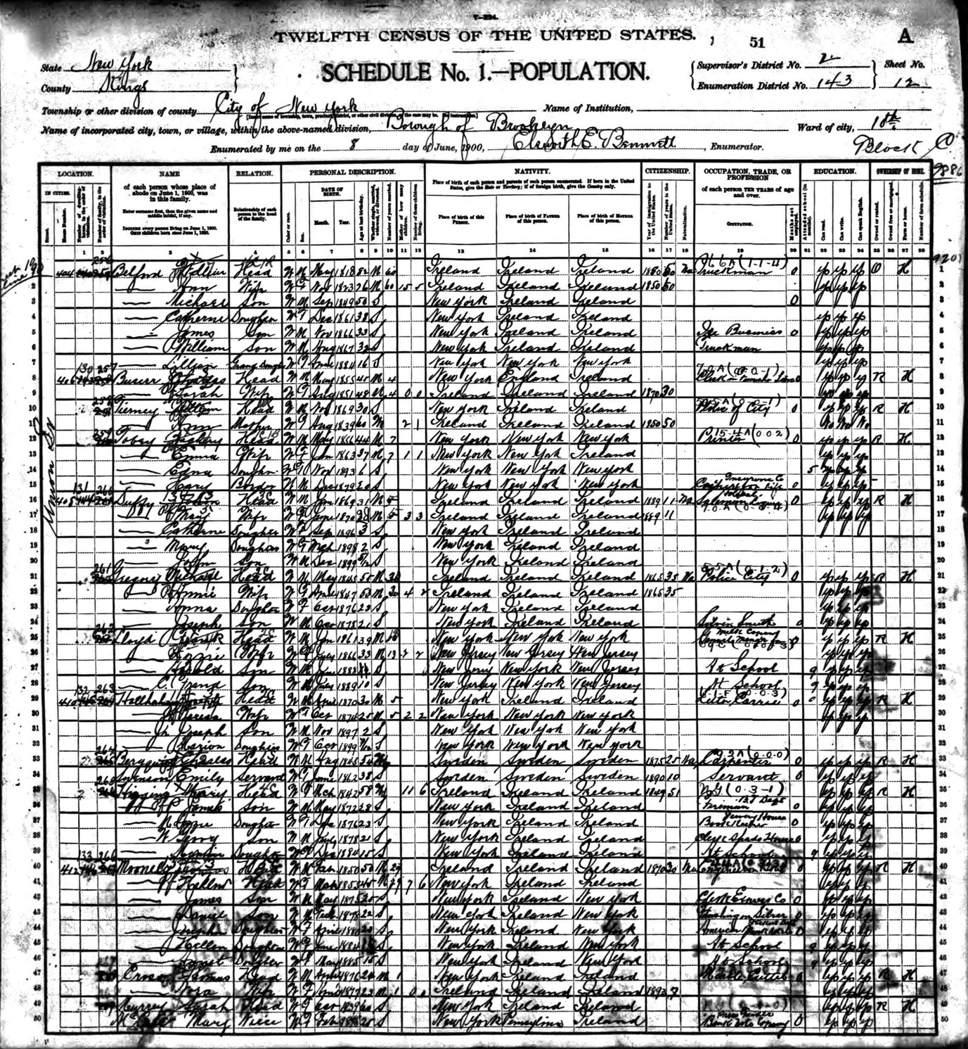 1900 Census - Duffy Family - Brooklyn, New York
